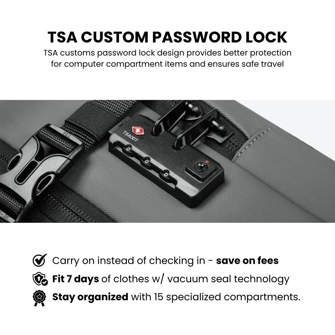 No more extra fees or standing around the carousel - Vacuum Seal Compression keeps travel simple.